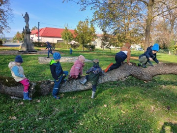 Naše prostorná zahrada je pro děti přírodní hřiště, kde mohou běhat, skákat, hrát si a objevovat krásy přírody. Je to místo pro aktivní pohyb, zábavu a přirozený rozvoj motorických dovedností. Zahrada nabízí dětem prostor pro výzvy i klidné chvíle v kontaktu s přírodou.