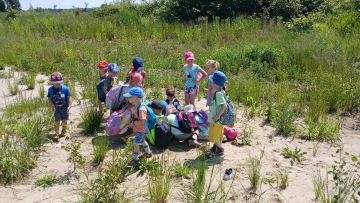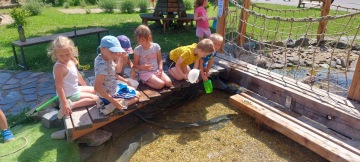 Různé venkovní projekty a hry podporující zvědavost a poznávání přírody.