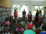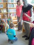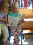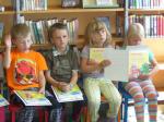 V místní knihovně prváčky v pátek 25. června přivítala paní královna Abecedka, dvorní dáma a rytíř. Školáčci předvedli své čtenářské dovednosti a s dopomocí paní učitelky Hanky složili slib, že se ke knihám budou chovat slušně a s úctou. Poté je rytíř pasoval na čtenáře.