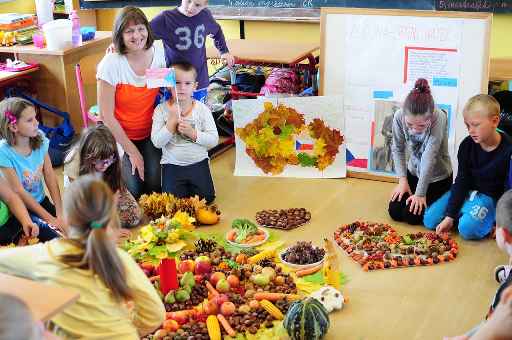 Dva dny a jednu noc jsme si ve škole užívali krás podzimní přírody, oslav výročí vzniku naší republiky i strachu z halloweenských kostýmů a masek. Vypravili jsme se poznávat podzimní přírodu v rezervaci Hůrka, kde nás zaujala vyhlídka u sv. Jana, zbytky hradu Svrčov a hlavně Hranická propast, odkud jsme došli na teplickou lázeňskou kolonádu, kde jsme si vychutnali oplatky a další občerstvení. Po návratu do Skaličky a sbírání žaludů a kaštanů v parku začal ve škole rej halloweenských masek a převleků. Nechybělo stylové občerstvení, strašidelné divadelní představení ani diskotéka. Před spaním jsme si ještě popovídali o tom, co jsme toho dne zažili a pustili si na dobrou noc film o Hranické propasti. Druhý den patřil oslavám svátečního 28. října i výrobě všeho možného z podzimních plodů. Vše završil zpěv národní hymny.