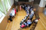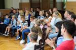 Oběd: Hovězí polévka s rýží a hráškem, zapečené těstoviny s uzeninou, okurkový salát, voda s citronem,