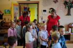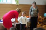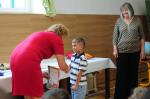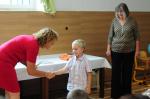 Oběd: Květáková polévka s bramborem, žemlovka s jablky a tvarohem, ovoce k obědu, ochucené mléko, džus,