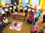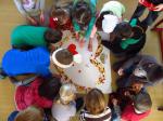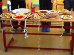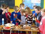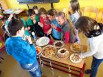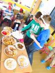 Oběd: Květáková polévka s bramborem, žemlovka s jablky a tvarohem, ovoce k obědu, ochucené mléko, džus,
