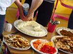 Oběd: Rajčatová polévka s kapáním, ražničí na plechu, brambory opékané, dressing, obloha, čaj,